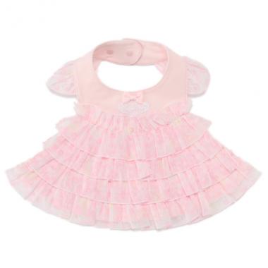 まるでワンピースのようなデザイン性の高さがポイントのスタイです。四段に重なったティアードにはかすかにお花模様を入れてとてもプリティー♪ 透け感を持っているのでボリューミーでありつつも軽やか。首周りはスナップボタンで2段階まで調節可能です。