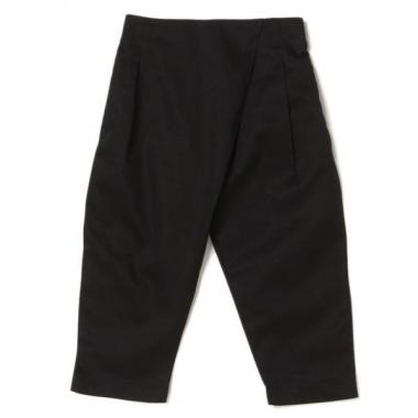 アシンメトリーなタックデザインで、モードな雰囲気をただよわせる変形テーパードパンツです。裾に向かってシルエットを細身に仕立てており、もたつかずスッキリとはきこなせるアイテム♪ 内側にお名前を記入できるタグつきです。両側ポケットつき。