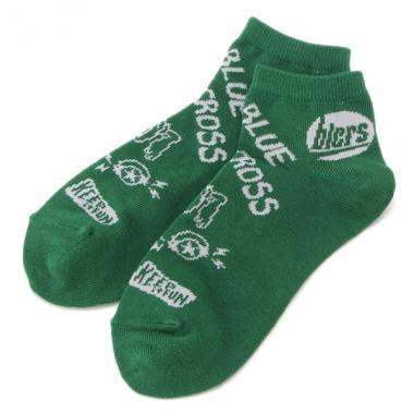 ロゴをランダムに描いた、グラフィティーデザインの個性ある総柄ソックスです。陽気に笑うハックの姿もポップな雰囲気を盛り上げるポイント。短めの丈でスニーカーとも相性の良いアイテムです。本体には抗菌防臭加工がほどこされています。