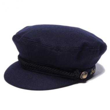 味のあるメタルボタンをあしらい、アンティークライクに仕上げたキャスケットです。フロントに配したロープ状のストリングが印象を引きしめるアクセント♪ サイドへロゴ刺しゅうをほどこして、ブランドアピールも抜かりなく。頭周りは内側の面ファスナーテープでサイズ調節が可能です。