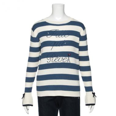 ロゴ刺しゅう入りボーダー柄フリル袖リブニット【50%OFF】