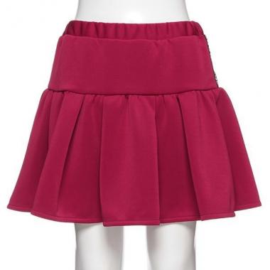 ハリのある生地がキレイなフレアシルエットをメイクするスカパンです。前後はシンプルにまとめ、サイドへロゴデザインをほどこしワンポイントに。裾裏からちらりとのぞく配色テープも目を引きます♪ ウエストはアジャスターゴムでサイズ調整が可能。