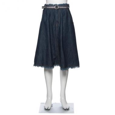 リングベルトつきカットオフミディ丈デニムスカート【50%OFF】