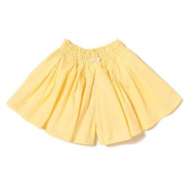 生地をたっぷりとって生まれるドレープ感が、スタイリングにニュアンスをプラスするキュロットです。幅広のシャーリングを寄せたウエストにはミニリボンでキュートなポイントをつけ、程よいカジュアル感が味わえる一枚です。両側にはポケットつきです。