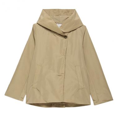 上品な光沢感のグログラン生地を採用した、大人カジュアルな雰囲気ただようフードつきブルゾンです。程良くゆとりを持たせたシルエットは、中に重ね着をしてももたつきにくく◎。打ち合わせの内側にスナップボタンを配した、スマートなフロントデザインがポイントです。