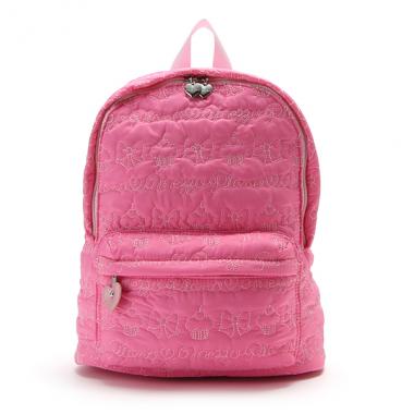 女の子の好きなリボンとカップケーキを全面に刺しゅうした、キュートさたっぷりのリュックです。肩からひもが落ちてこないチェストベルトやクッション性のある背面メッシュなど、快適に使うための機能性を揃えました。手がふさがらないリュックはお子さまが使用するのにぴったりのアイテムです。