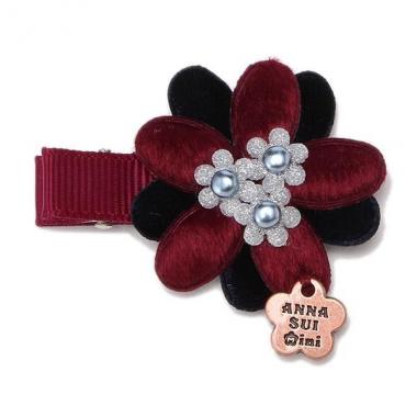 毛並みのよう風合いと女の子らしいお花で仕上げたヘアクリップです。華やかに彩るフェイクパールやブランドロゴ入りプレートがちょっぴり大人顔♪ シックな色合いなので、お呼ばれや特別な日にもぴったりです。クリップ部分には布をかぶせ、髪の毛が絡みにくいようにしました。