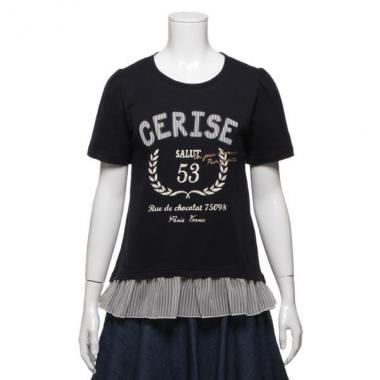 裾シフォンフリルつき半袖Tシャツ【50%OFF】