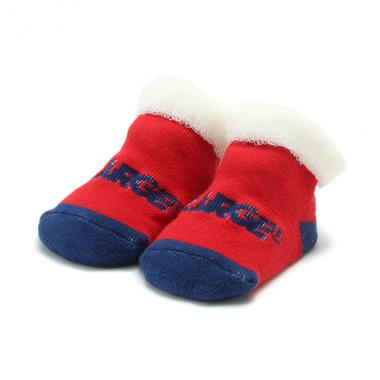 メリハリあるカラーリングで、スタイルの差し色としても活躍するソックスです。ブランドをしっかりとアピールできるロゴ入りデザインのアイテム。はき口をふわふわなパイル素材で切り替え、表情に変化をつけています。