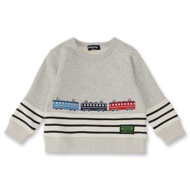 電車刺しゅうボーダー切り替え裏毛トレーナー【30%OFF】