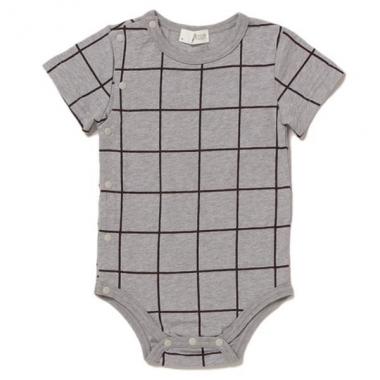 コットン素材のソフトな編地を採用した、着心地の良いロンパースです。黒はドット柄、トップグレーはチェック柄、ディープグレーはストライプ柄と、カラーによって異なるパターンを採用しました。内側にお名前を記入できるタグつきです。