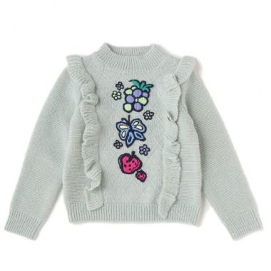 黒い縁取りでモチーフを際立たせたニットセーターです。モチーフに寄り添うフリルがガーリームード満点♪ 目を引くダイヤ型の編み地や上品なハイネック仕様などハイセンスのディテールがたっぷり。コンパクトシルエットで着こなしがミニマルにまとまります。