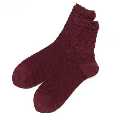 繊細に浮かぶフラワー柄がガーリーな印象のソックスです。はき口にはフリル状に生地を寄せてかわいらしいアクセントをプラス♪ スニーカーにはもちろん、革靴やサンダルなどに合わせて足元を華やかに彩ってくれる一足です。