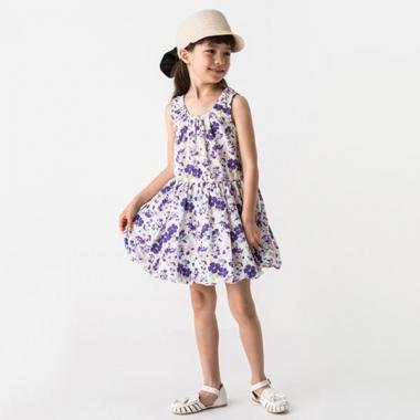 愛らしい花柄を全体に描いたノースリーブワンピースです。裾は独特のふくらみでニュアンスを生み出すバルーン仕様♪ 生地にはわずかにシワ感を持たせたカジュアルな風合い。一枚ではもちろん、インナーやカーデを合わせれば長く着用できます。・モデルサイズ116cm・着用サイズ120cm
