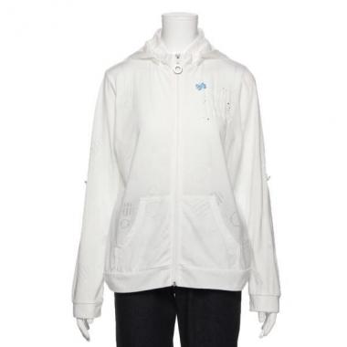 大粒のドットやマリンモチーフをミックスした、透け感のある愛らしいパターンのオパールジップパーカーです。リング状のファスナーヘッドや、胸元のストーン飾りが動くたびキラリと輝き良いアクセントに♪ 取り外し可能なフードもポイント。ボトムスは参考商品です。※クリームとサックスのみトドラーサイズあり、品番:4882216・モデルサイズ151cm・着用サイズ160cm
