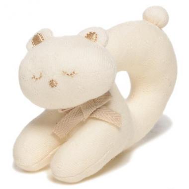 瞳を閉じて休んでいるような姿がかわいい、アニマルモチーフのラトルです。全体を淡いトーンでまとめて、やさしい雰囲気がただよう仕上がり♪ ふんわりとソフトな素材感で、肌触りも良好です。贈り物としてもおすすめな1品。