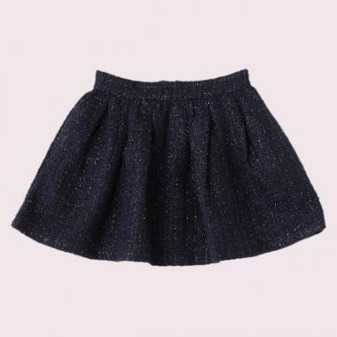 キラキラのグリッター糸を生地に混ぜてコーデを華やかに彩るスカート。独特の風合い感が特徴のツィードで大人顔。おでかけ着としてみんなに差をつけられるアイテムです。裏地つきで安心のミニ丈はロングブーツとも好相性。両側にはポケットつきです。