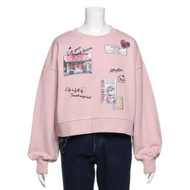 ボリューム袖おしゃれグラフィックト裏毛トレーナー【50%OFF】