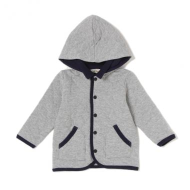 取り外し可能なフードつきで、コーディネートやシーンに応じて変化を楽しめるカーディガンです。波模様のキルト地や、パイピングでアクセントを効かせたバイカラーデザインがモダンな雰囲気♪ フロントにポケットがついており、ちょっとした小物をしまえるのもポイントです。