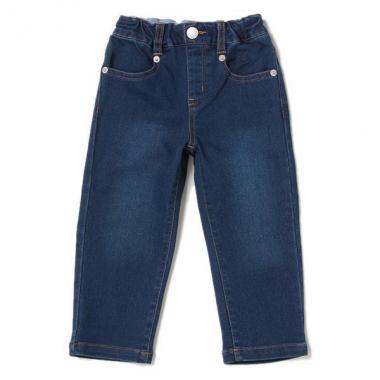 デイリーコーデのマストアイテムになるシンプルなストレートパンツです。カジュアルなデニムルックでアクティブなお子様にもぴったり♪ ウエスト部分は楽々はけるゴム仕様になっています。内側にお名前を記入できるタグつきです。