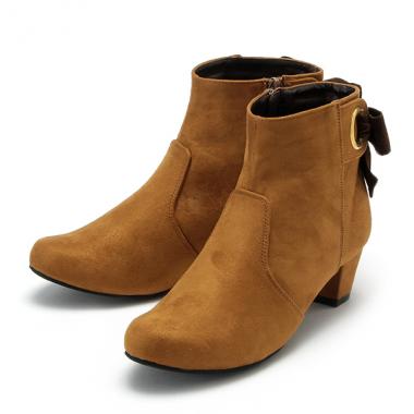 後ろ姿をかわいく演出する、バックリボンつきのショートブーツです。やや太めのヒールは安定感があり、歩きやすいのがポイント♪ サイドをファスナーで開閉できるので、脱ぎはきもラクチン。カジュアルにもキレイめな装いにも取り入れやすい万能アイテムです。